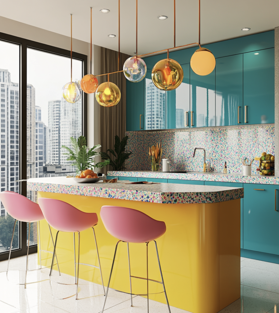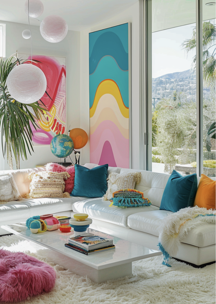 It is all about creating spaces that spark joy and boost your mood through bold colors and playful details. Unlike traditional neutral-toned designs, this style embraces vibrant hues, patterns, and textures to make your home feel energetic and uplifting.