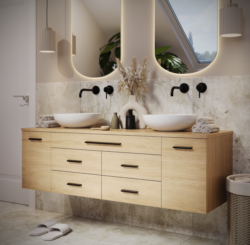 It doesn’t warp, bend, or absorb moisture — the surface stays straight and consistent over time. Color and texture remain uniform from piece to piece, without fading or changing their appearance. And unlike real wood, the finish requires no special care and keeps its perfect look even under daily use.