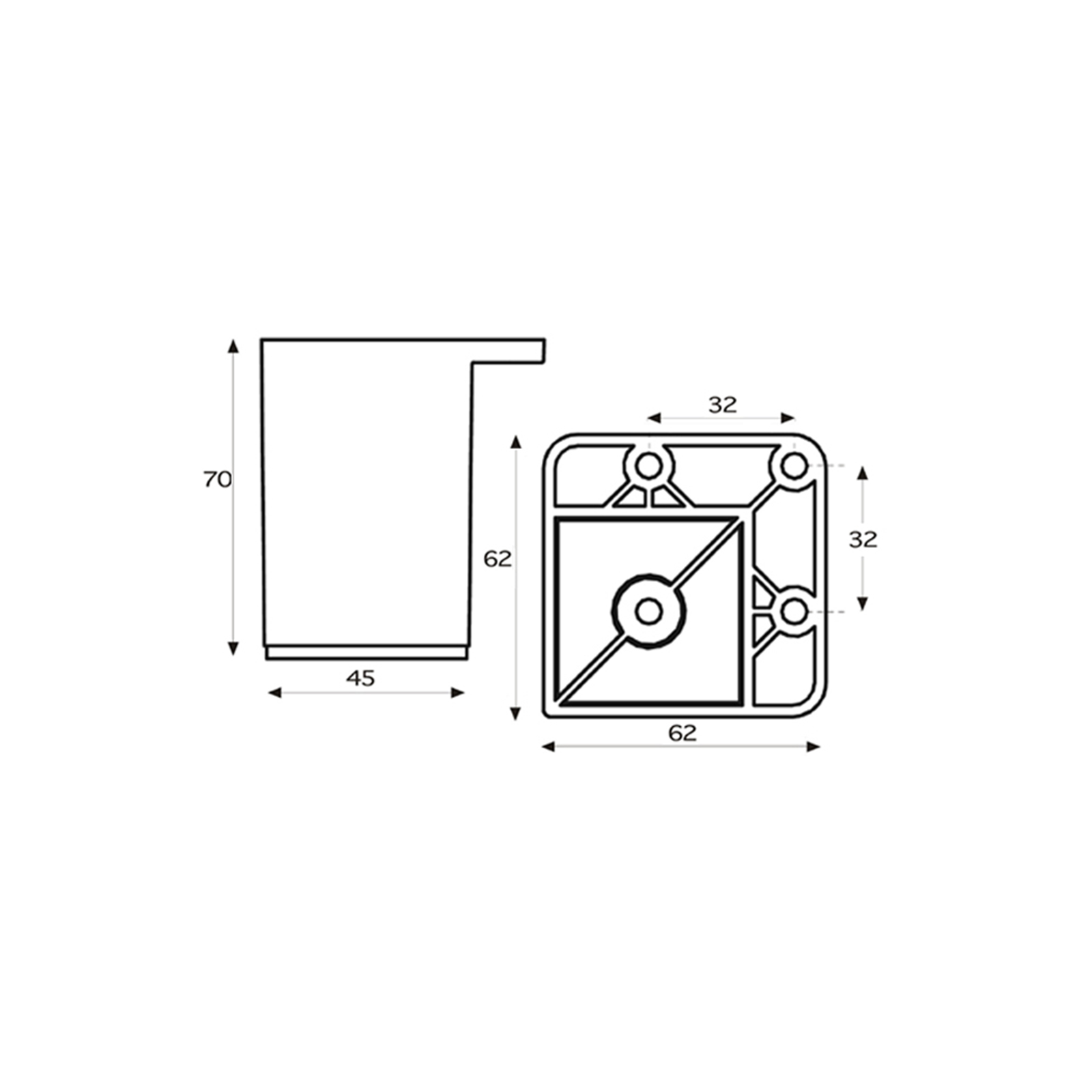 | Mitte zu Mitte | 32 mm |